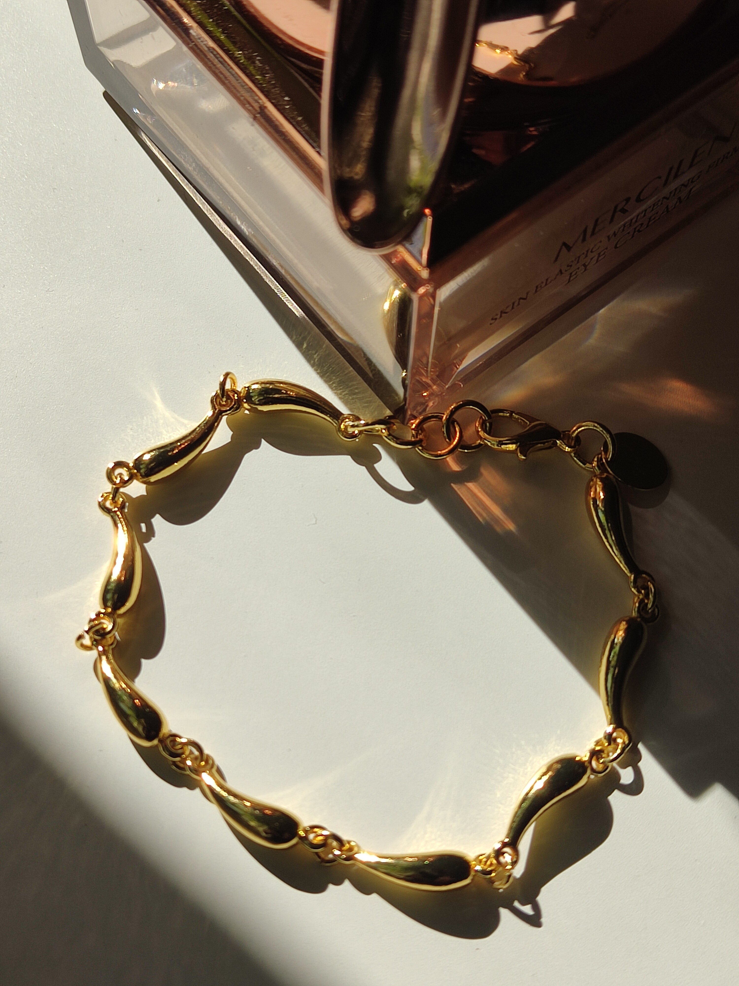 Ta pozłacana Bransoletka ma nowoczesny, elegancki design i luksusowy wygląd. Jego złoty kolor podkreśla szyk i doskonale komponuje się z innymi złotymi dodatkami.