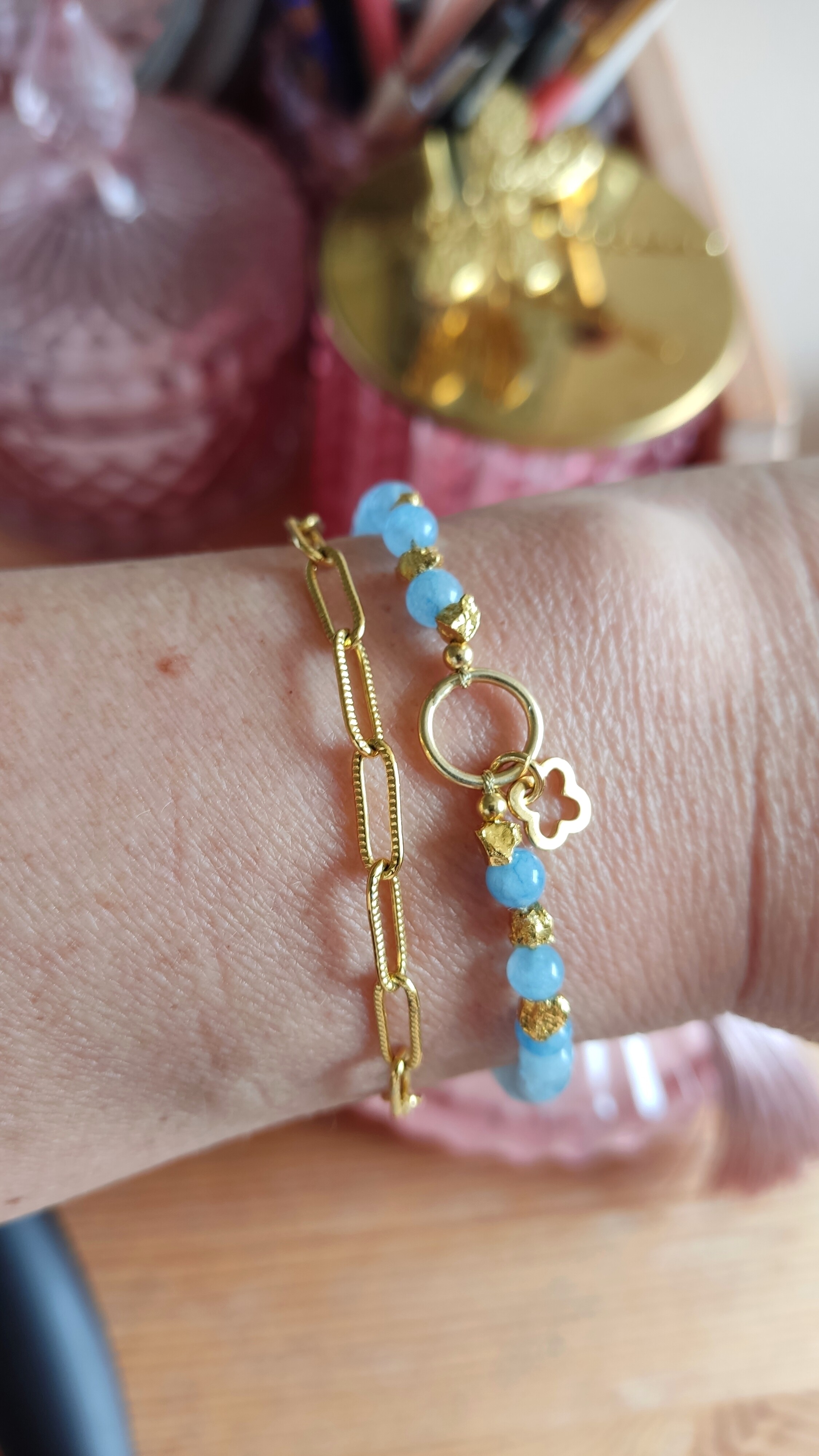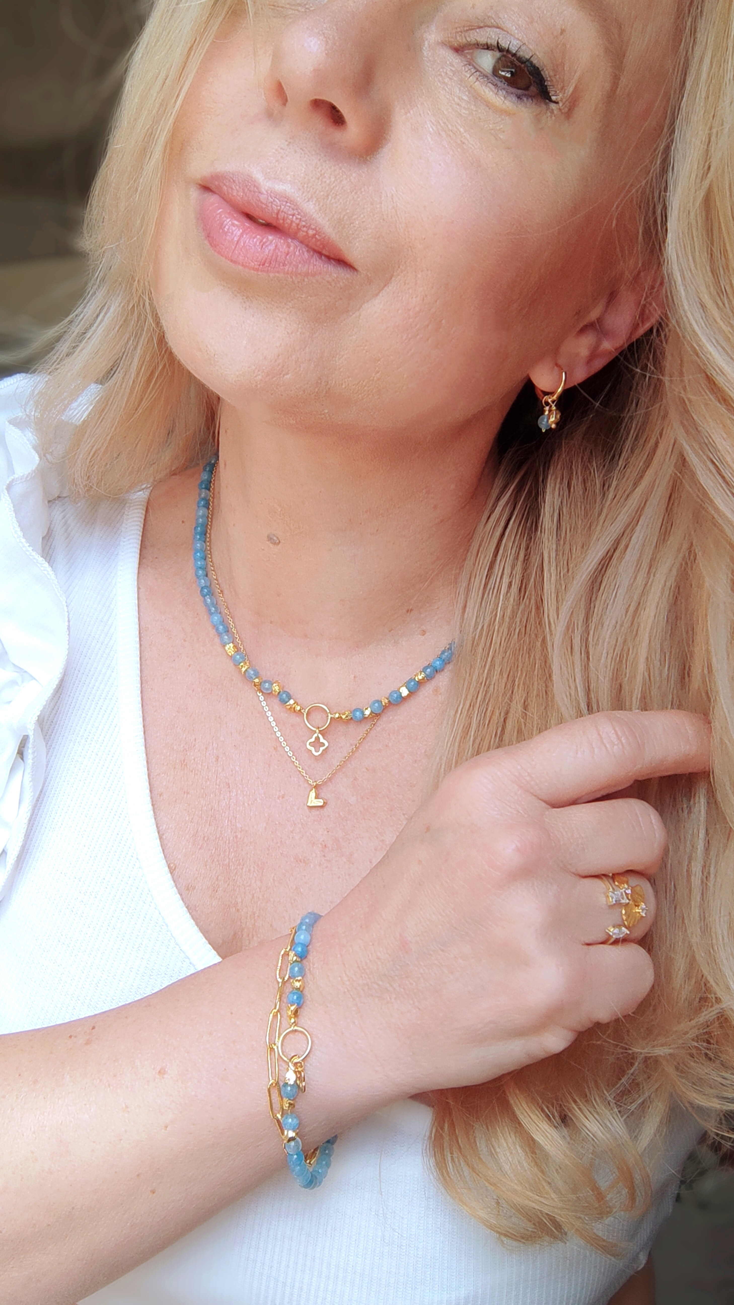 Akwamaryn to kamień terapeutyczny, który ma zdolność odciągania złej energii. Uważany jest również za kamień szczęścia, przyciągający pieniądze, dodający pewności siebie, pomagający się odstresować. Nazywany jest kamieniem odwagi, polecany jest do noszenia szczególnie osobom nieśmiałym, które mają problemy z nawiązywaniem nowych znajomości. Poprawia naszą pewność siebie, dodaje asertywności oraz wpływa pozytywnie na komunikację międzyludzką. Ułatwia skuteczne odmawianie i wyrażanie swoich myśli, pomaga bronić swoich racji, dodaje spontaniczności i pozytywnej energii w kontakcie z innymi. Ma również wiele właściwości oczyszczających i detoksykujących. Oczyszcza umysł, czyniąc go krystalicznie czystym jak woda, dostarcza pozytywnych emocji i energii, pomaga pozbyć się negatywnych emocji, takich jak lęk czy stres, i wspomaga relaksację