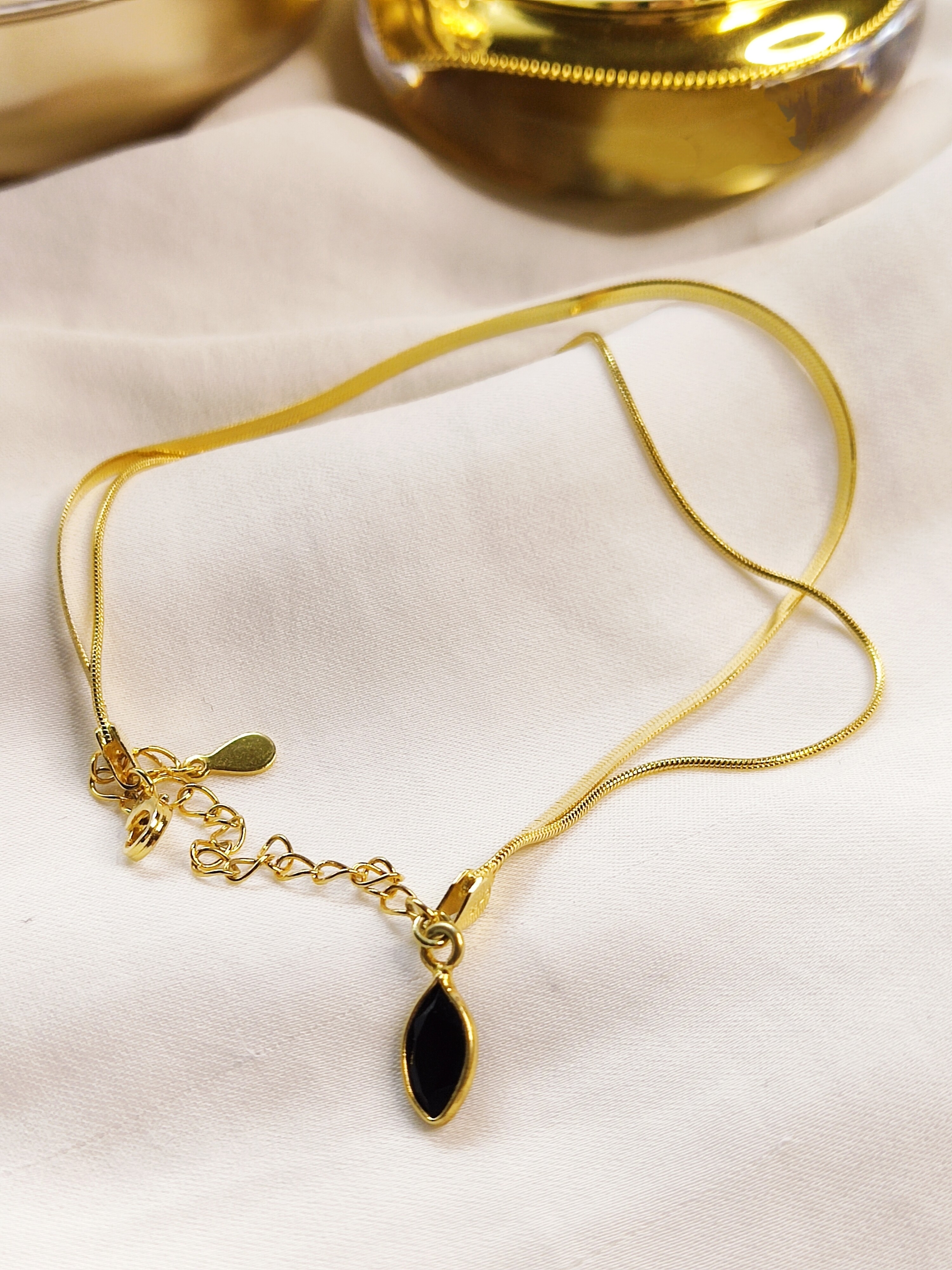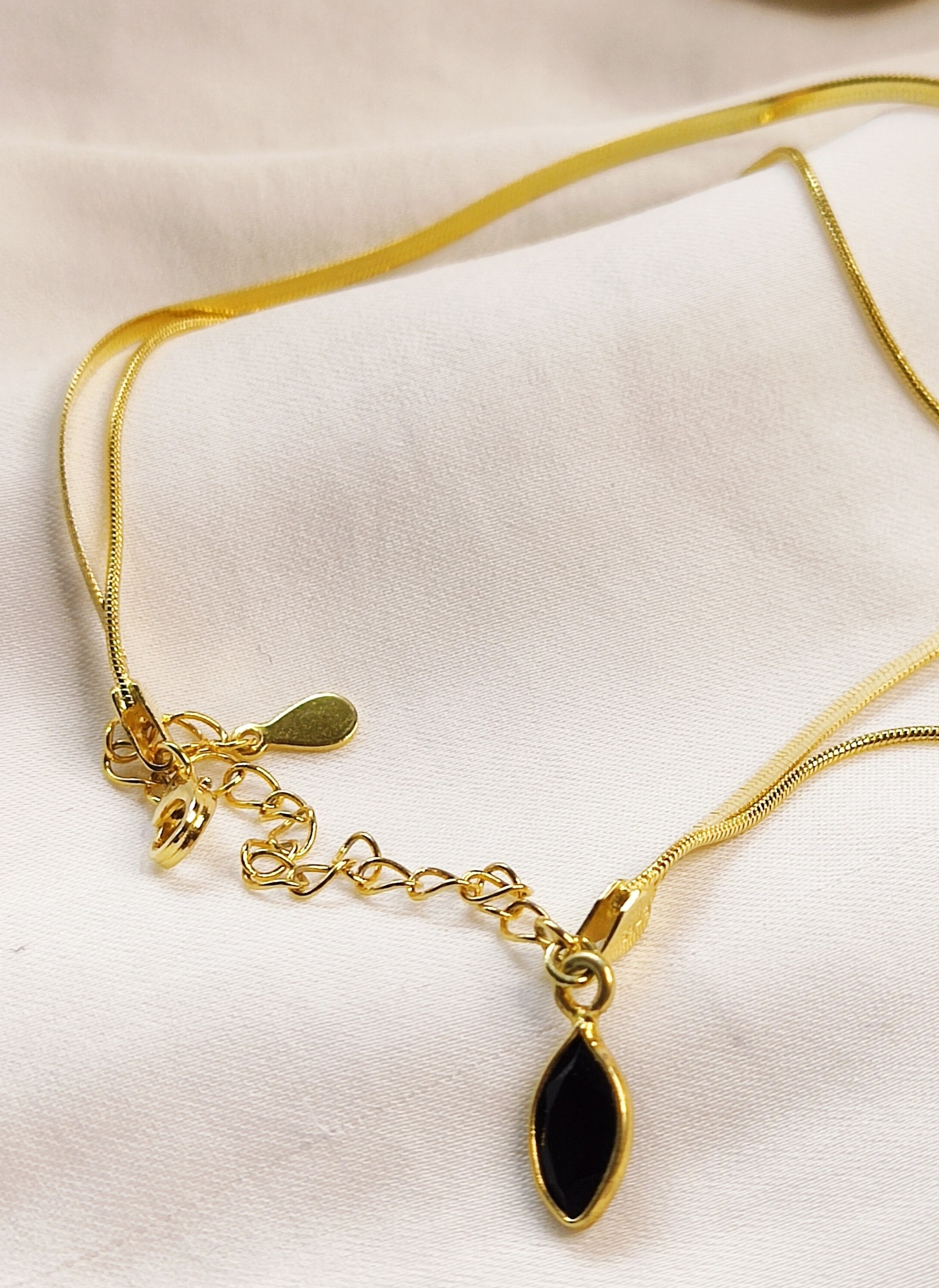 Onyks właściwości - Kamień ten niweluje negatywne myślenie i pomaga spojrzeć na sytuację świeżym spojrzeniem. Pomaga w redukcji stresu oraz napięć. Przynosi duchową inspirację i jasność umysłu. Równoważy wewnętrzną energię, dzięki czemu łatwiej panować nad emocjami.