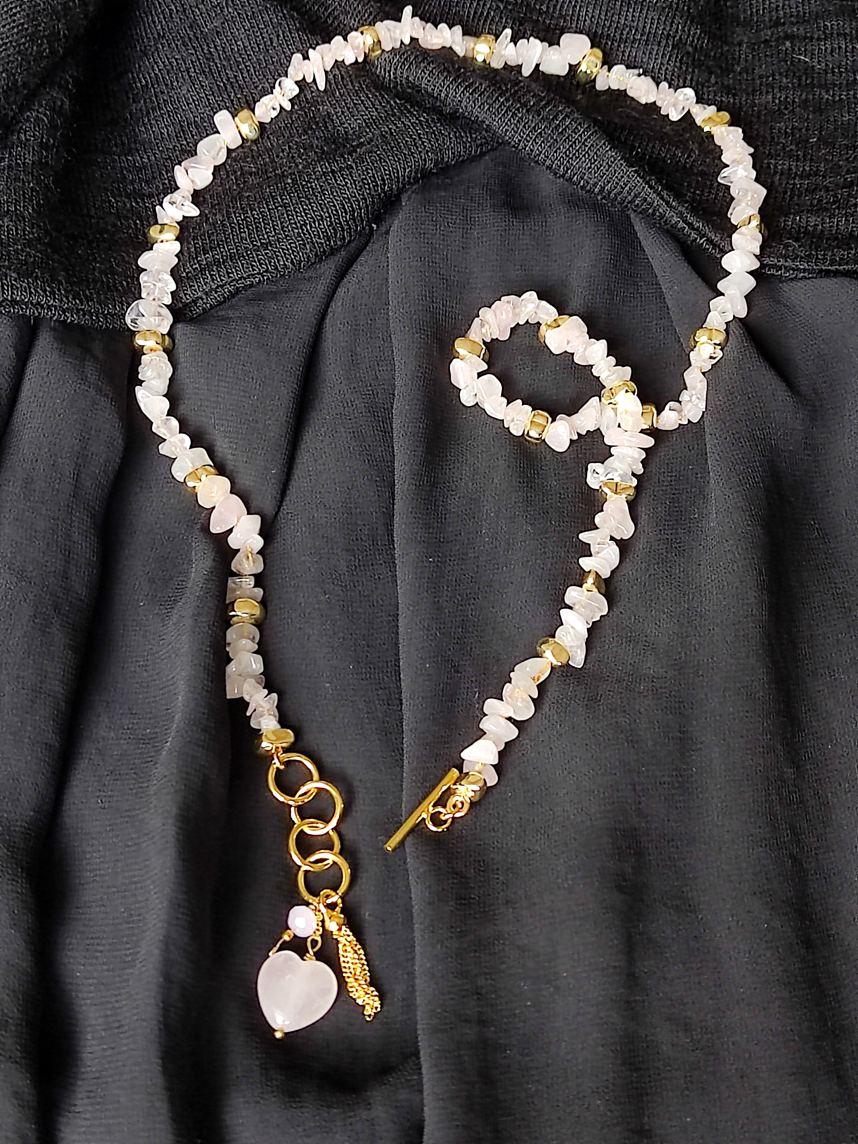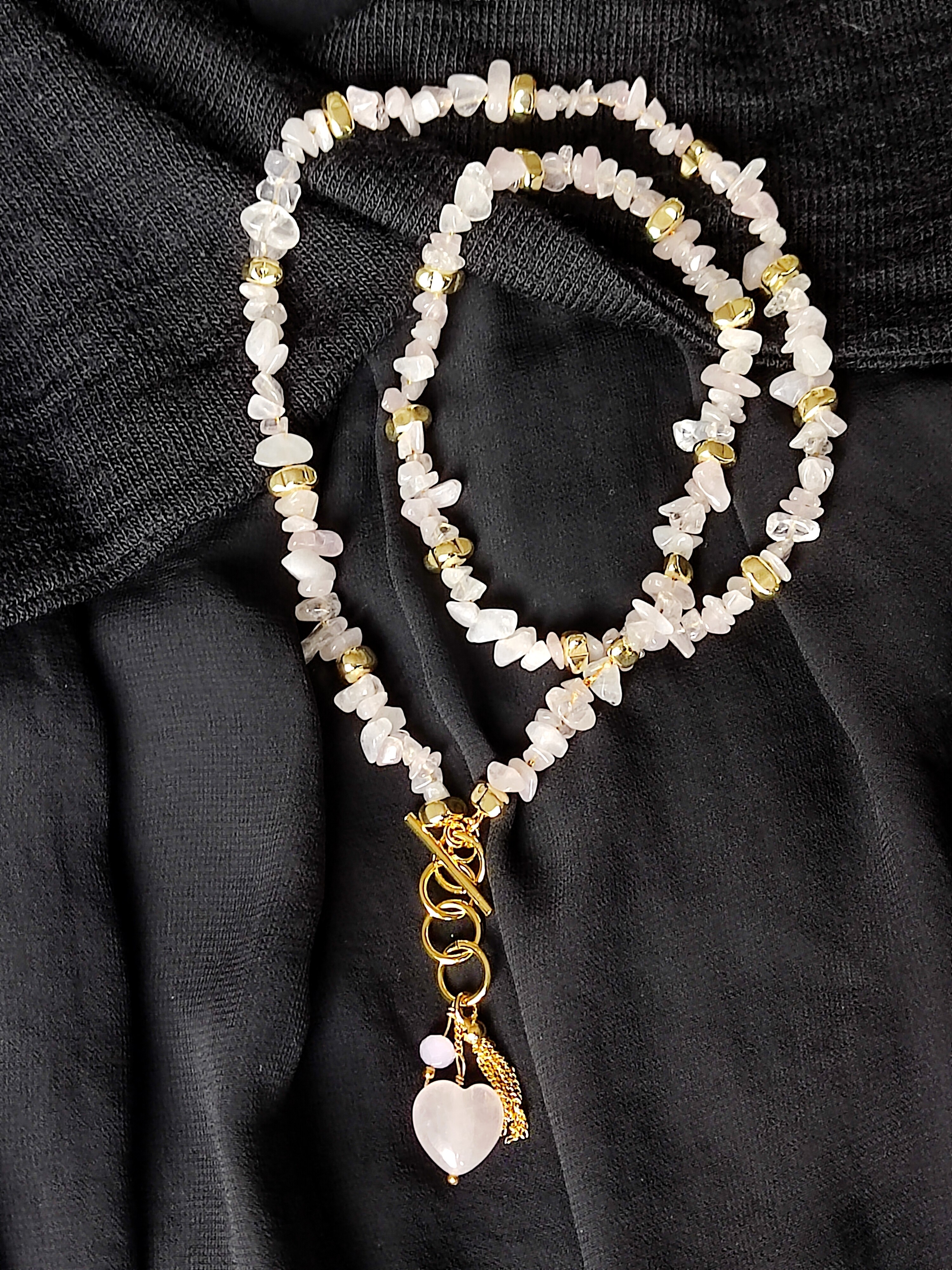 Kwarc różowy pomaga w rozwoju bezwarunkowej miłości: zarówno do siebie, jak i innych. Co więcej, kamień ten wspomaga rozwój kobiecej energii oraz pozytywnie wpływa na czakrę serca. Sprzyja on wybaczaniu i ogólnym stosunkom międzyludzkim. Kwarc różowy posiada zdolność uspokajania umysłu i ciała, łagodząc stres oraz przynosząc uczucie bezpieczeństwa i akceptacji.