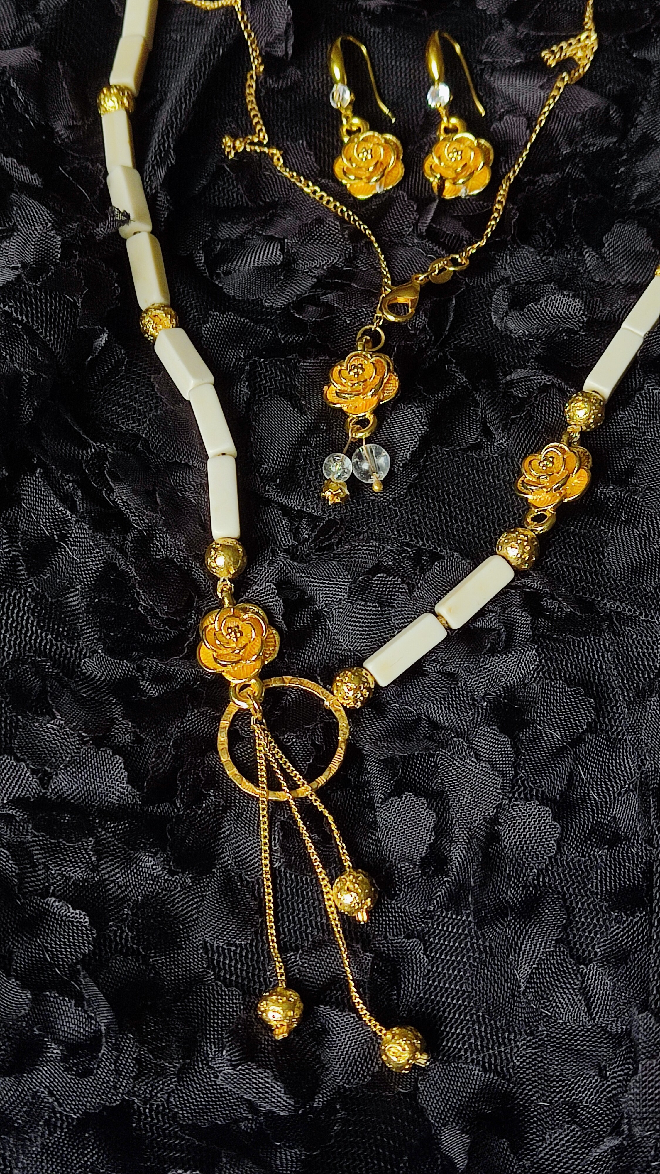 Dostępne Naszyjnik, Kolczyki i Bransoletka z Kolekcji Róża - widoczne na zdjęciach.