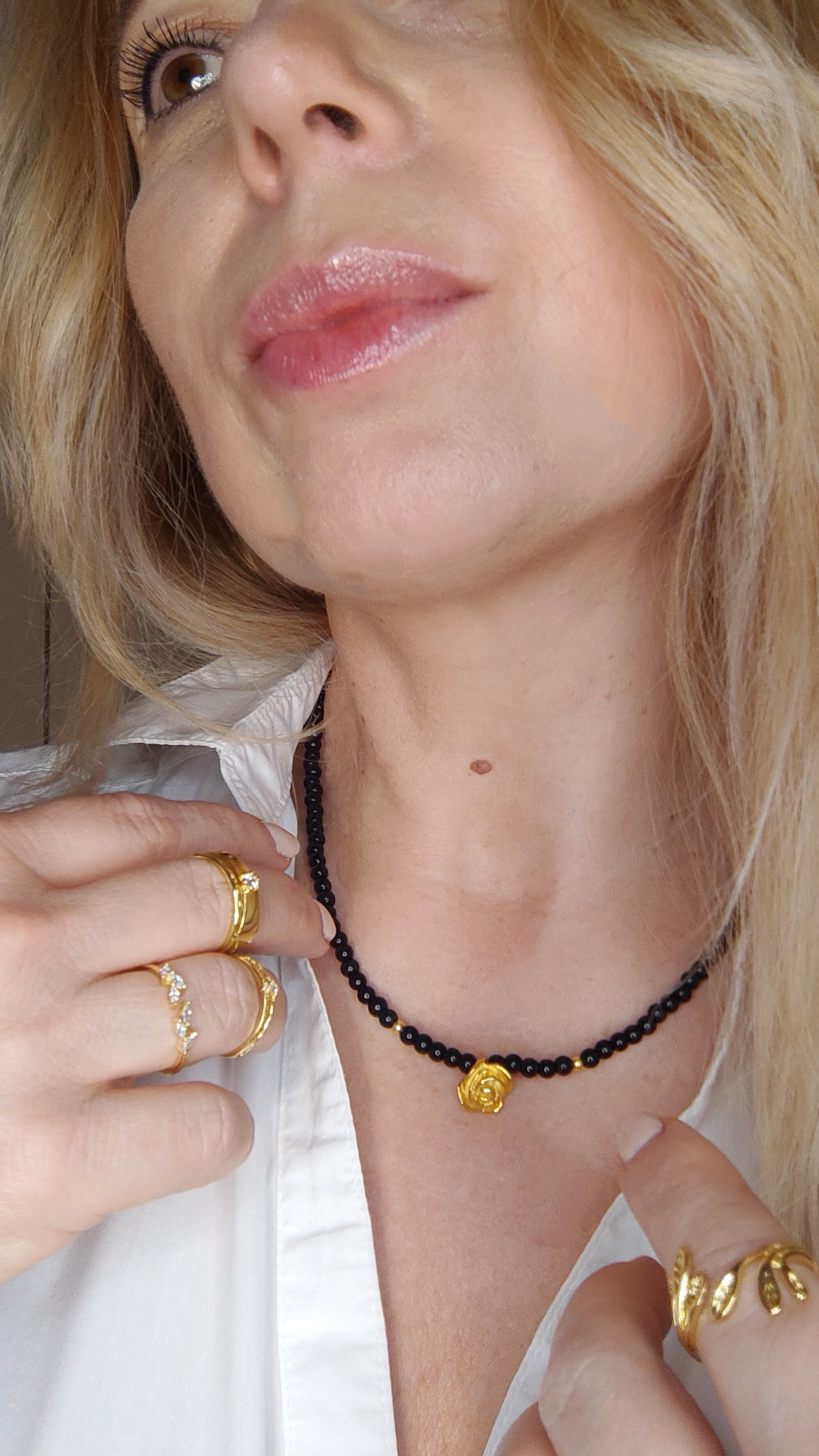 Onyks właściwości - Kamień ten niweluje negatywne myślenie i pomaga spojrzeć na sytuację świeżym spojrzeniem. Pomaga w redukcji stresu oraz napięć. Przynosi duchową inspirację i jasność umysłu. Równoważy wewnętrzną energię, dzięki czemu łatwiej panować nad emocjami.