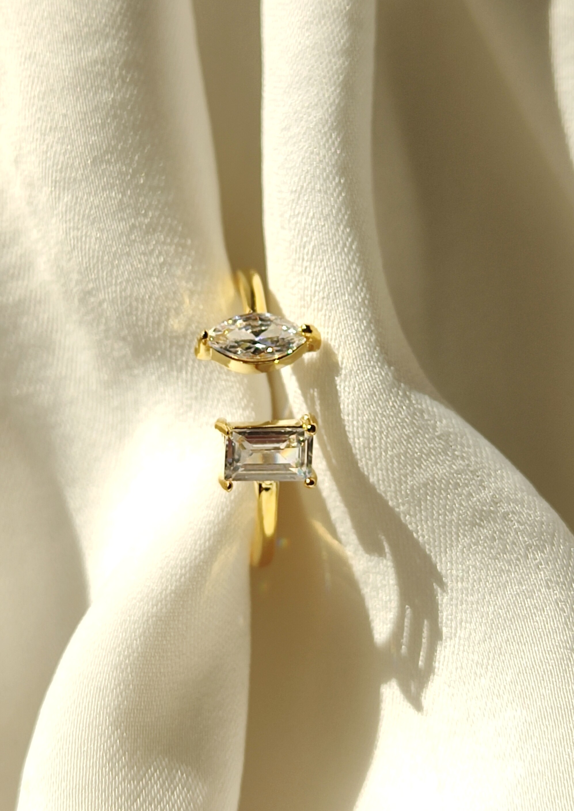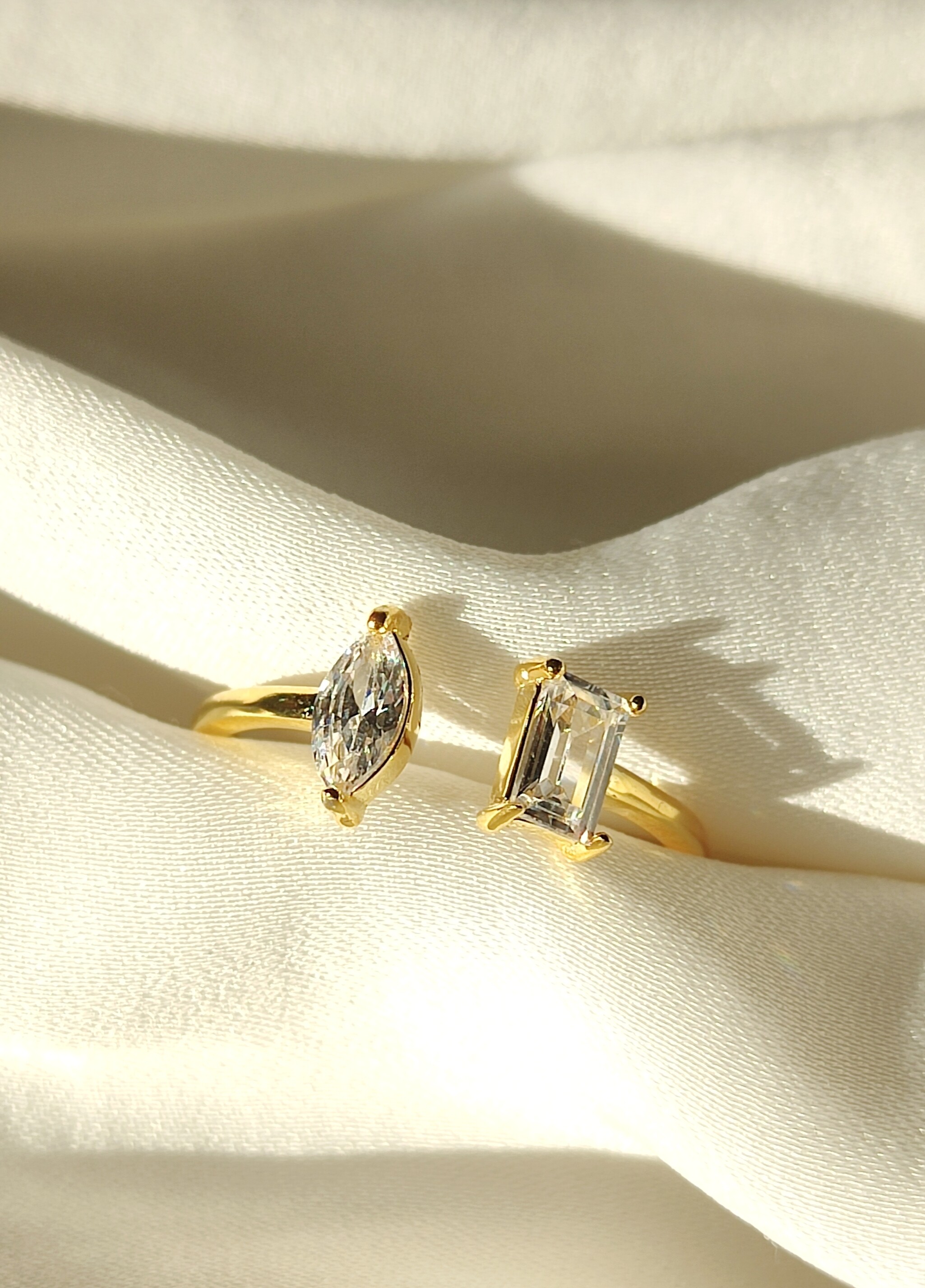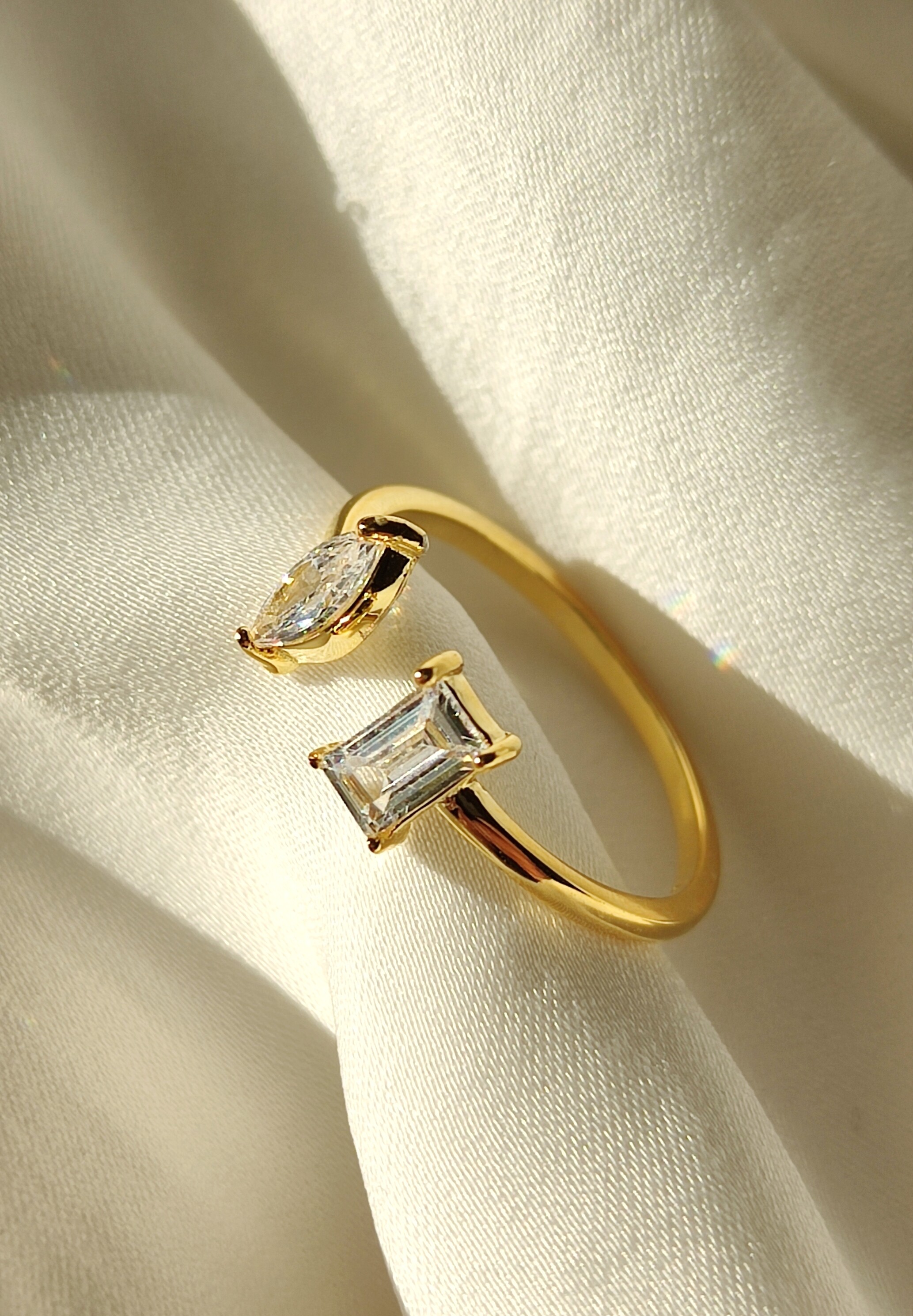 Pierścionek z Cyrkoniami z wysokiej jakości Srebra 925 pozłacana 14K złotem. Delikatny, elegancki, a zarazem nowoczesny design. Całość niezmiernie urocza i nie tuzinkowa.