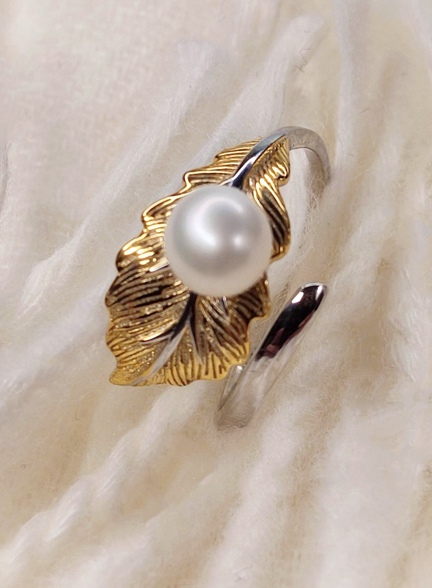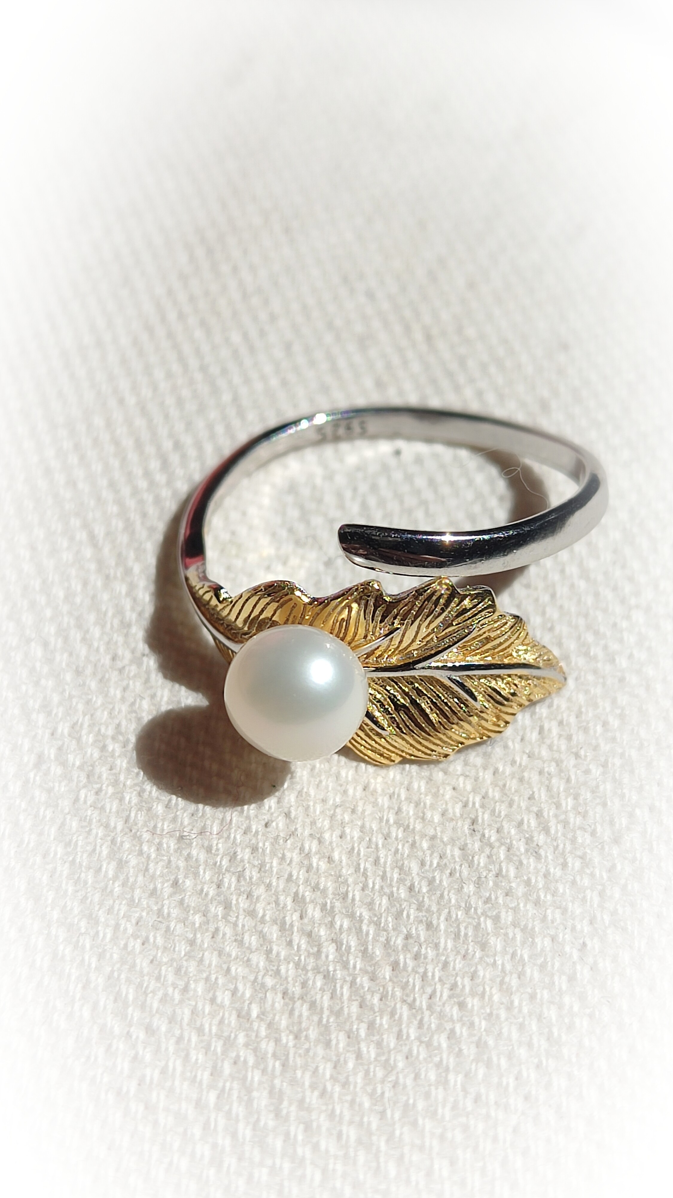 Pierścionek w rozmiarze uniwersalnym regulowany między 6-9. (16,6mm-19mm) Perła seszel wielkość około 6mm.