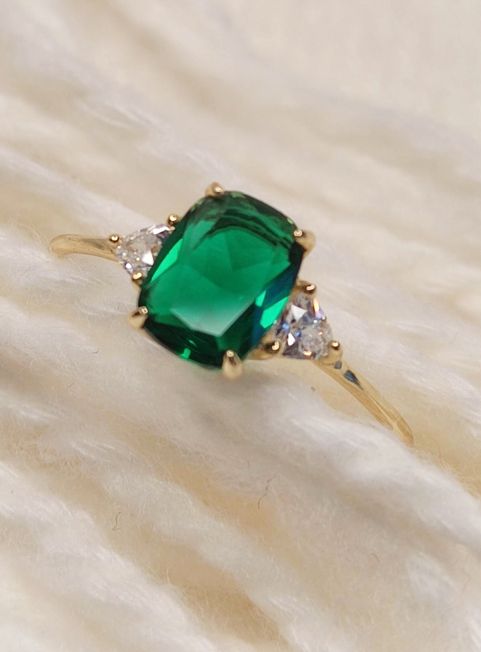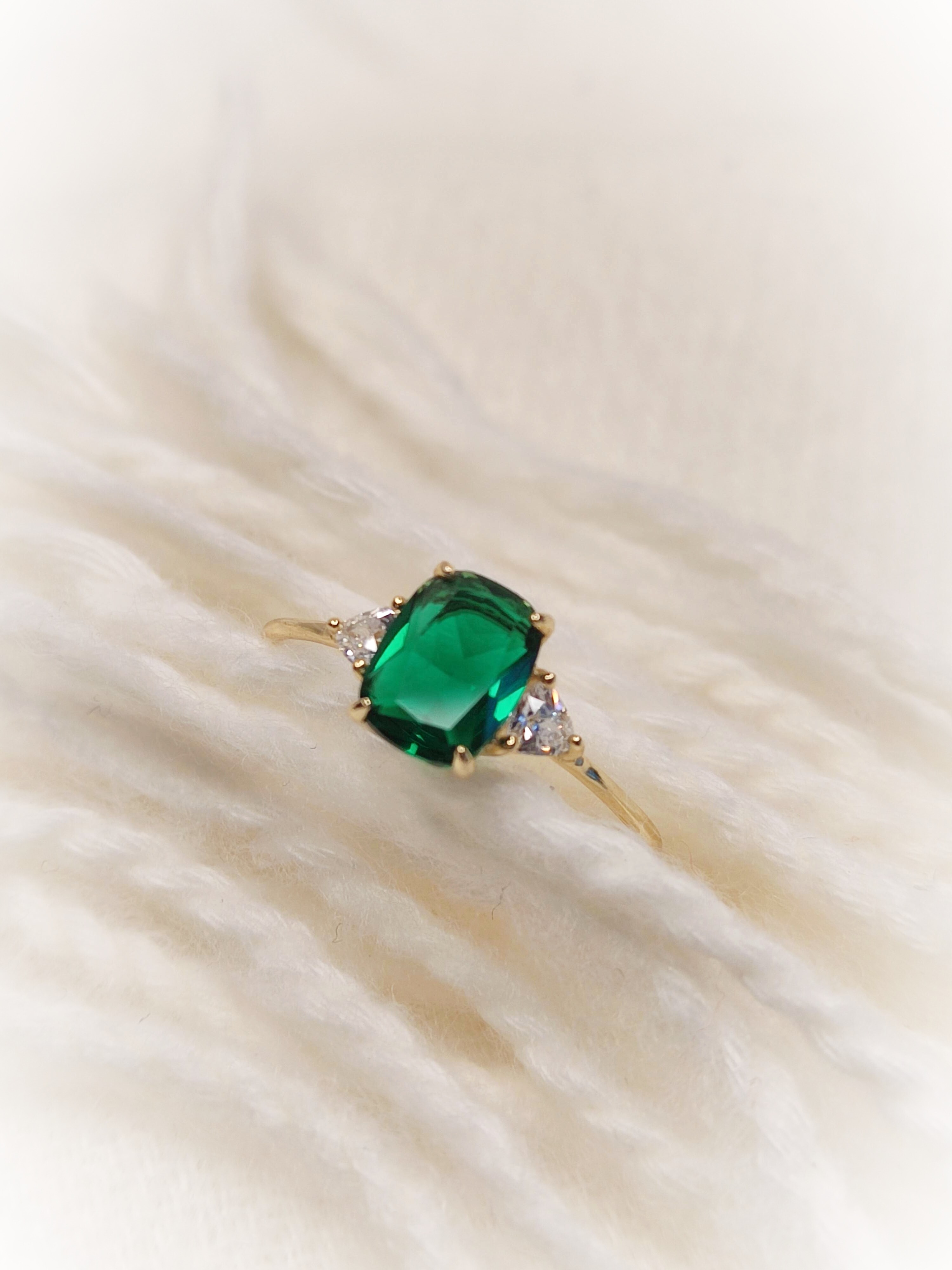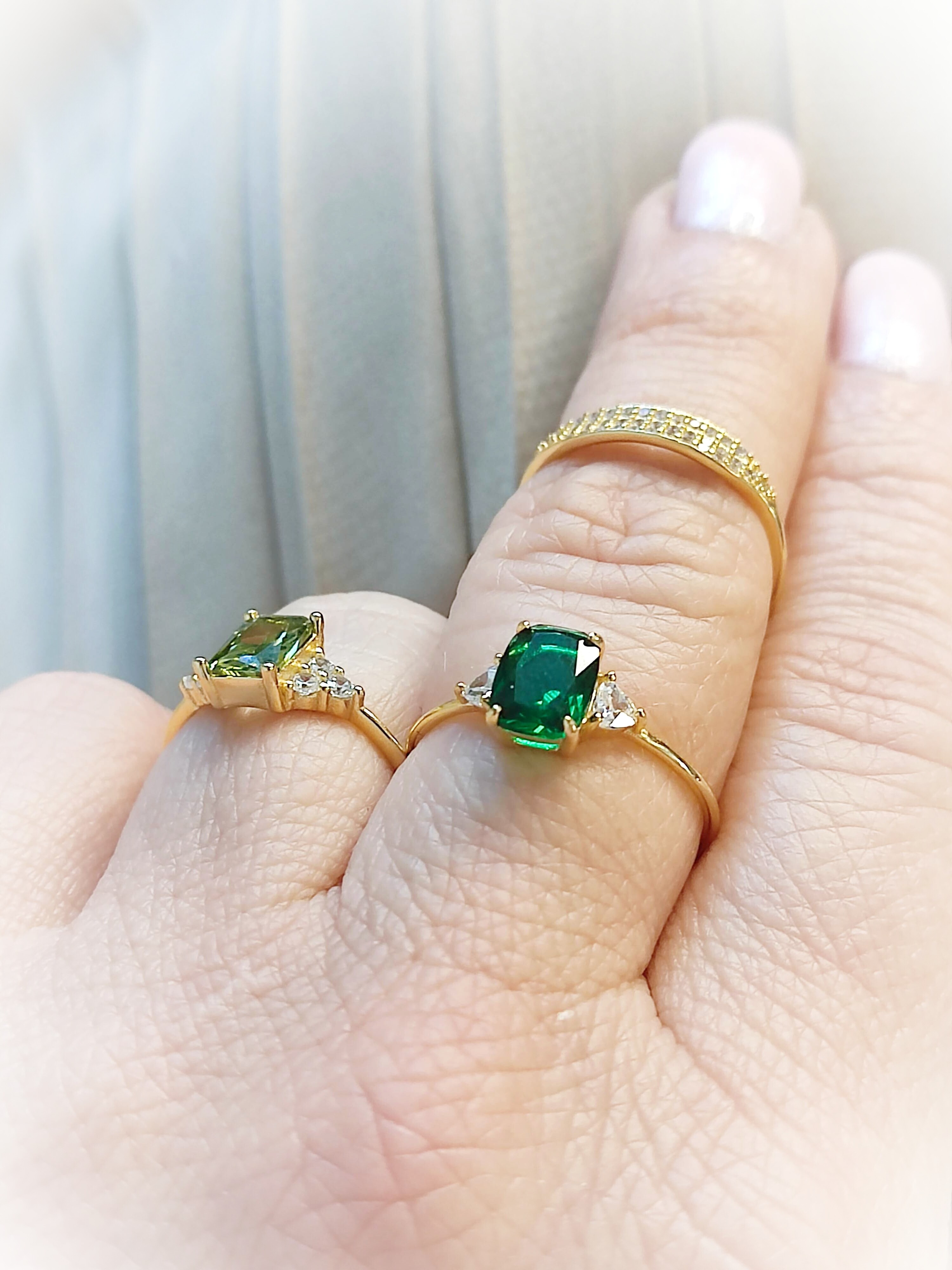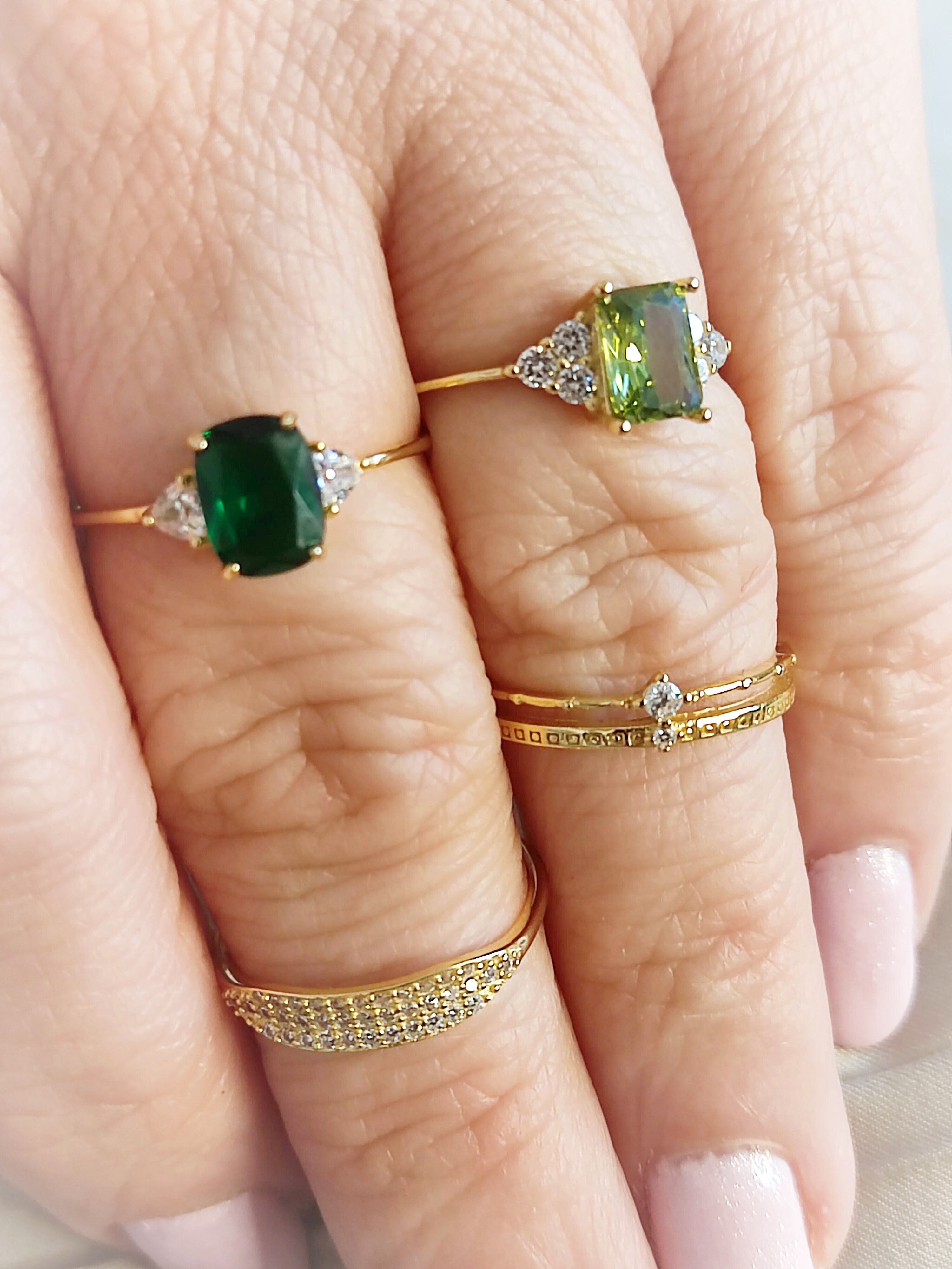 Pierścionek z Cyrkoniami - ciemna zieleń